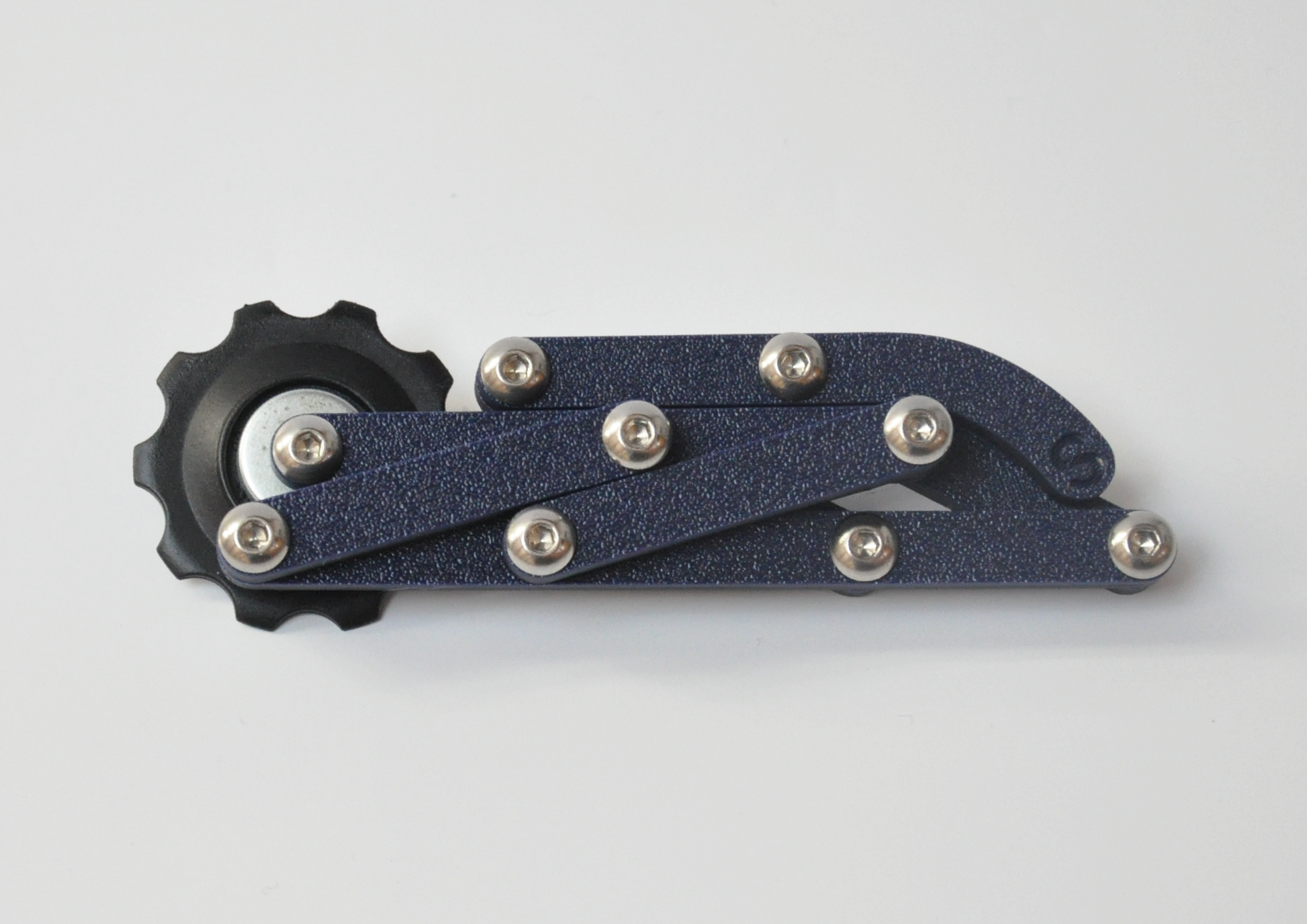 Der SKLAPPT Ketten-Einfädler ist ein Werkzeug für herausgefallene Fahrradketten, welches in seiner vollen Länge 26cm erreicht und auf 11cm zusammengeklappt werden kann. Durch die Klapp-Funktion ist es einfach zu transportieren und schnell einsatzbereit. Der Ketten-Einfädler besteht aus einem Schaltwerk-Rad aus technischem Kunststoff, 3D-gedruckten Verbindungselementen aus PLA und Edelstahlschrauben. Das Produkt wird in limitierter Auflage in Bern hergestellt.